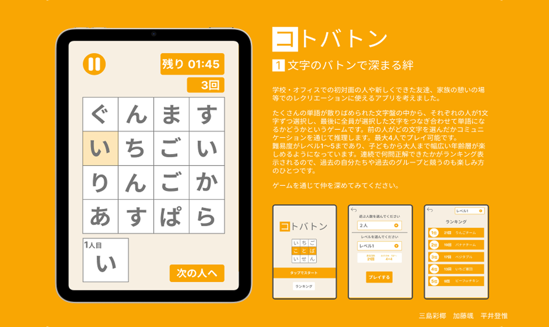 平井登惟、三島彩椰、加藤颯、山崎貴史