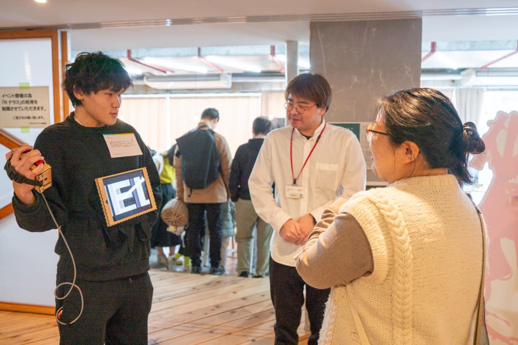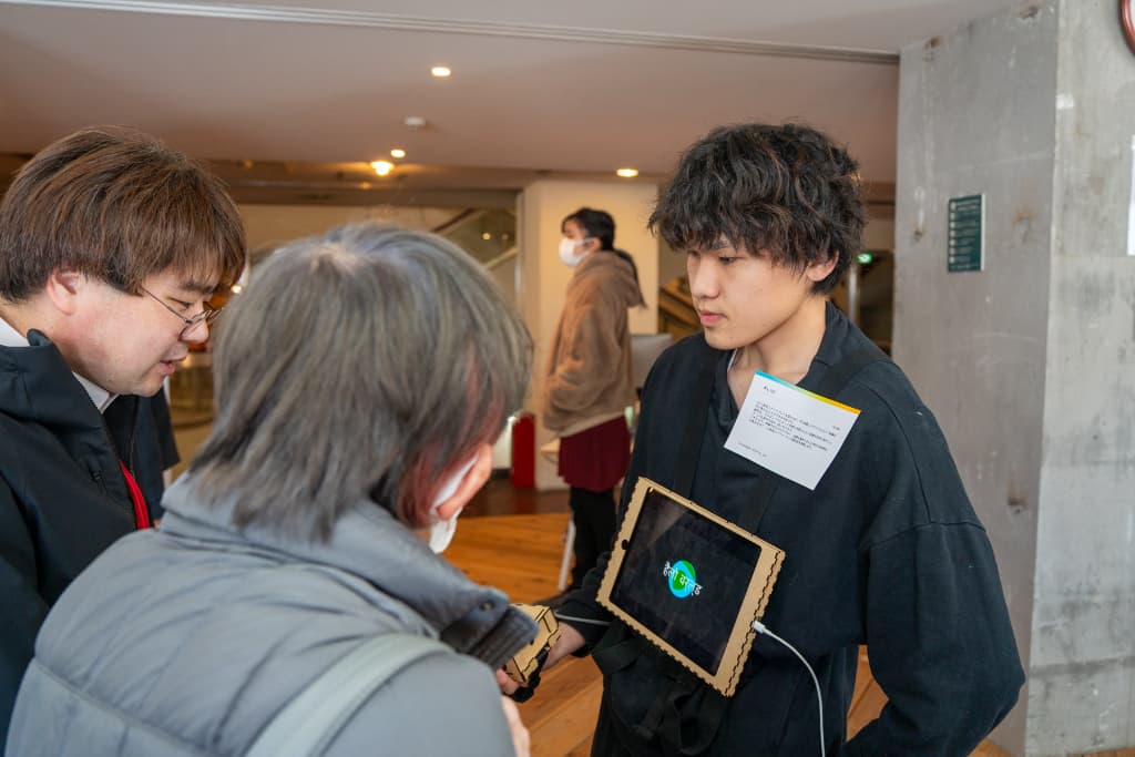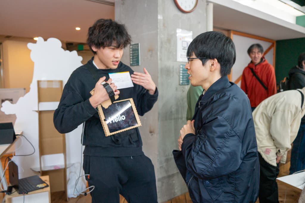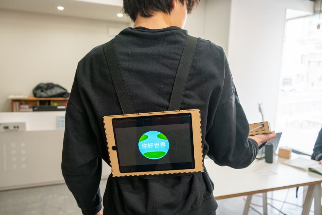 VJの身体にディスプレイを取り付け、手に装着したデバイスによって映像を切り替えることができる作品です。 通常は、プロジェクタによって空間に投影されるVJ映像を身体に映すことで、VJ自身が作品の一部となります。 これにより、映像そのものだけでなく、映像を操作するVJの存在や身体性にも焦点を当て、VJ表現とパフォーマーの関係性を考察します。